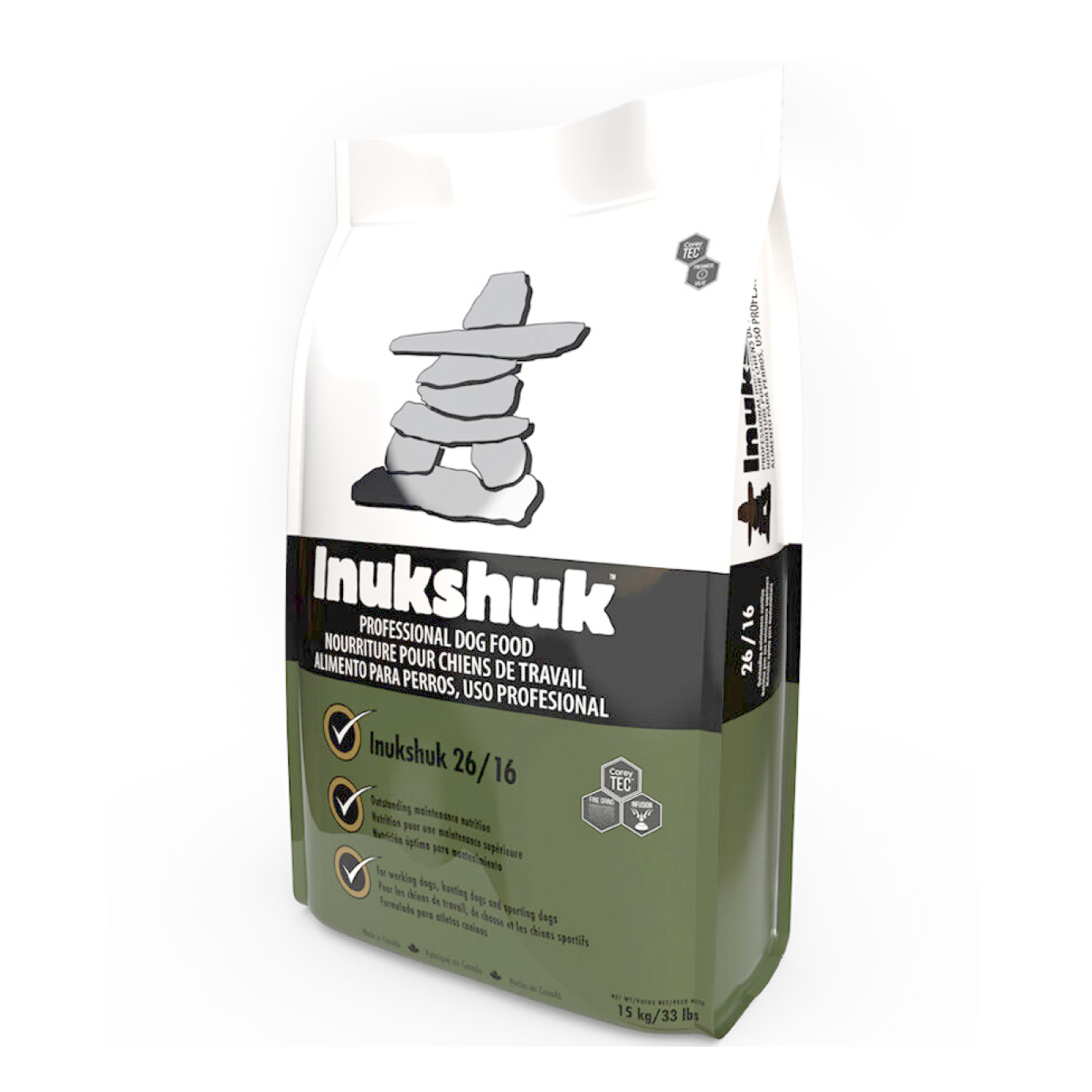 Our Inukshuk 26/16 formula is designed to be an ideal dog food for all life stages, including growing